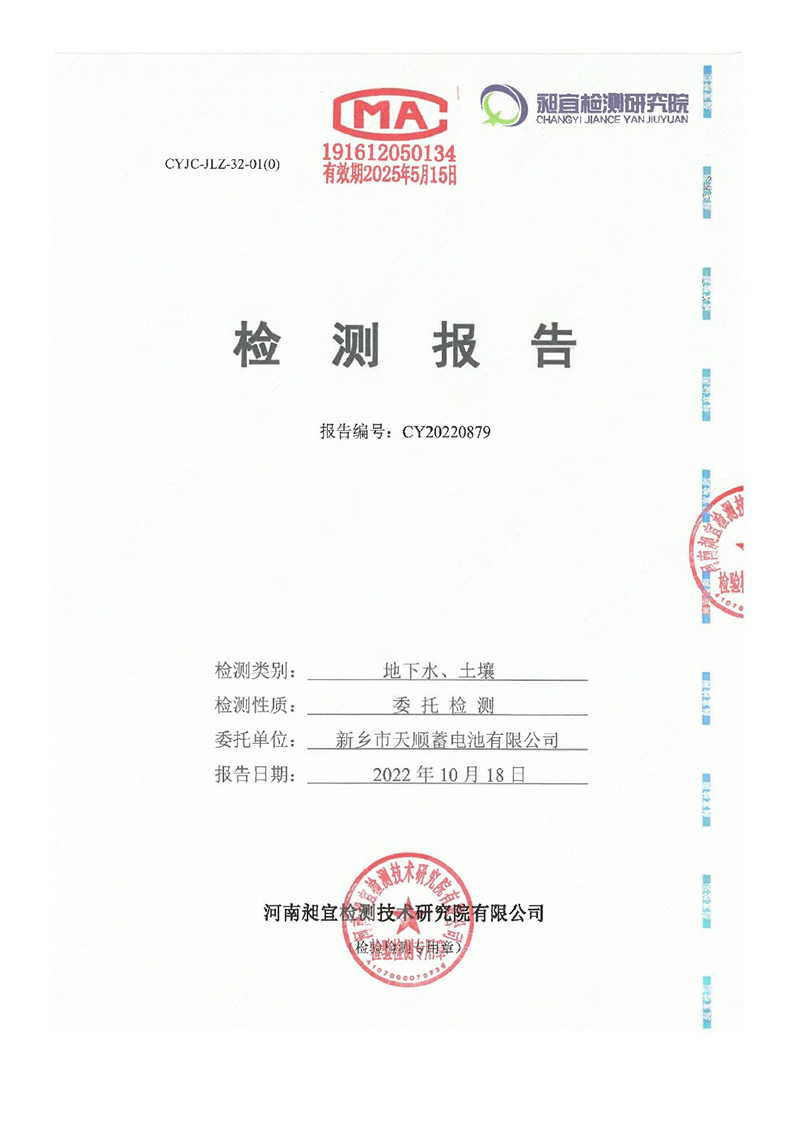 - 2020年新鄉(xiāng)市天順蓄電池有限公司土壤檢測結(jié)果2020-12-05